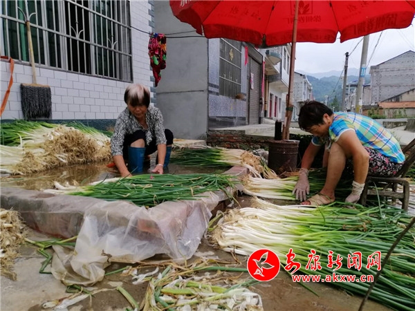 眼下,正值新蔥大量上市的季節(jié)。在安康市恒口示范區(qū)高樓村二組,筆者看到兩位老人正坐在門前臨時(shí)壘起水池邊包裝整理從地里挖回的新蔥,臉上充滿收獲的喜悅。