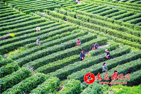 近年來(lái),白河縣卡子鎮(zhèn)發(fā)展茶園面積近1300畝,帶動(dòng)當(dāng)?shù)?20余戶200余人,實(shí)現(xiàn)戶均增收2000元以上。圖為近日,茶農(nóng)趁著濃濃春意在卡子鎮(zhèn)東壩桂花村茶園忙碌著。