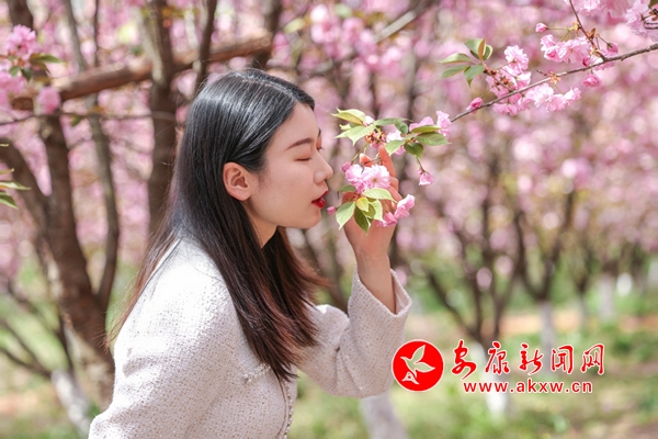 遠遠望去,一團團、一簇簇櫻花肆意地舒展著身姿,在風(fēng)中輕輕顫動,爛漫而美麗,公園里不時吹來陣陣微風(fēng),撩撥起片片花瓣,任其在空中隨風(fēng)散落,煞是好看,漫步其間,繽紛的“櫻花雨”伴著浮動的“櫻花香”,也能沉醉于花海之中。
