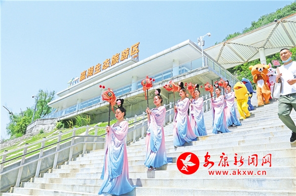 休閑勝地翠屏島,最大的亮點(diǎn)是玉清橋的彩虹瀑布,游客從橋下經(jīng)過(guò),感受“瀛湖之水天上來(lái)”的曼妙,這也是瀛湖為游客送上的初夏第一絲清涼。橋頭幸福的天梯、鳥(niǎo)巢,成為排隊(duì)拍照的絕佳點(diǎn)位。運(yùn)動(dòng)場(chǎng)上,滾鐵環(huán)、射箭、投壺、打籃球,讓游客流連忘返。兒童樂(lè)園旁,微型爆米花機(jī)勾起了孩子們參與的興趣,彩繪激發(fā)了孩子們的繪畫(huà)熱情。瀛湖水上嘉年華,精彩刺激的水上項(xiàng)目帶給游客酣暢的體驗(yàn),游客紛紛直呼“過(guò)癮”!