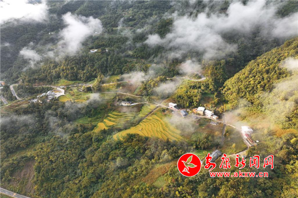 大湖溪位于鎮(zhèn)坪縣城關(guān)鎮(zhèn)友誼村,距離縣城大約半小時車程。沿207省道順南江河而下,穿過南江湖大壩就到了谷口。一條嶄新的柏油馬路沿溪流伸向大山深處,茂密的森林覆蓋著山巒,星星點點的農(nóng)舍、民宿集群和土地,若隱若現(xiàn)地掩映在云霧繚繞的群山之間,許多保存完整的巴山古老傳統(tǒng)民居石板屋,炊煙裊裊,與淡淡的晨霧相互交織,構(gòu)成了一幅渾然天成的水墨畫卷。放飛手中的無人機,我貪婪地捕捉這一幅幅夢幻般的景致。