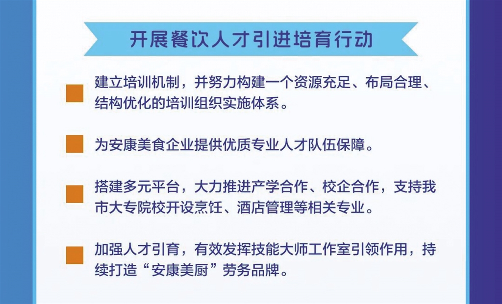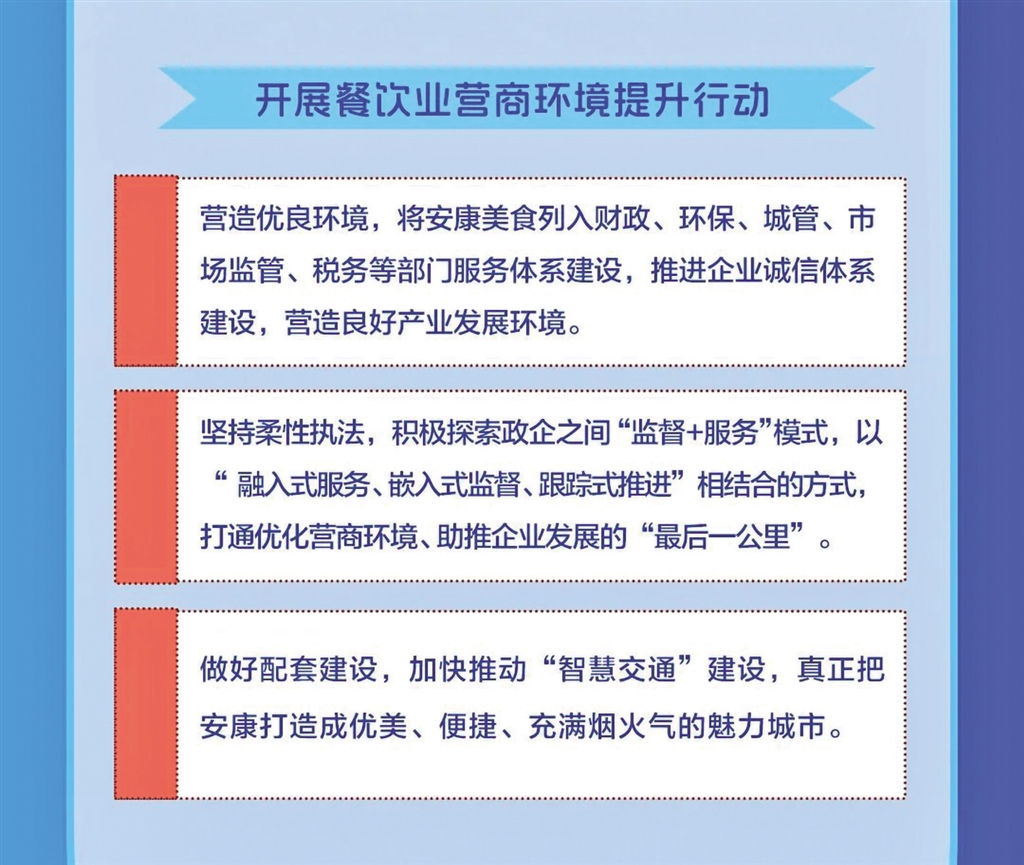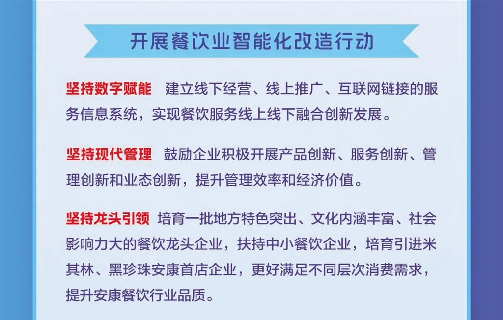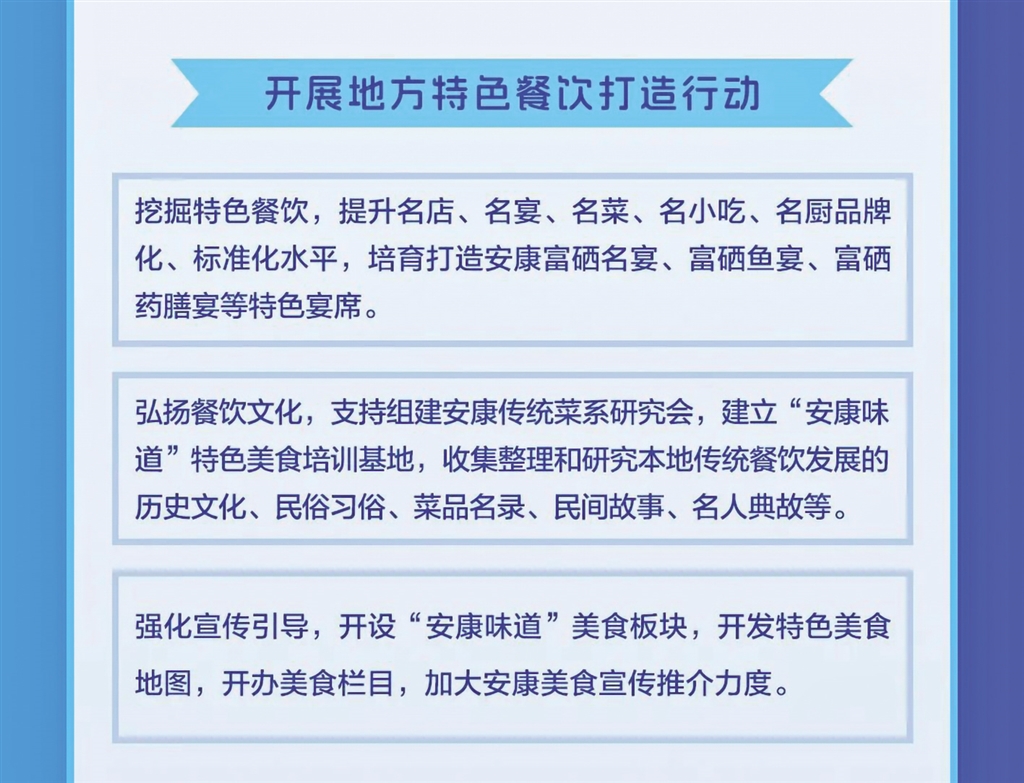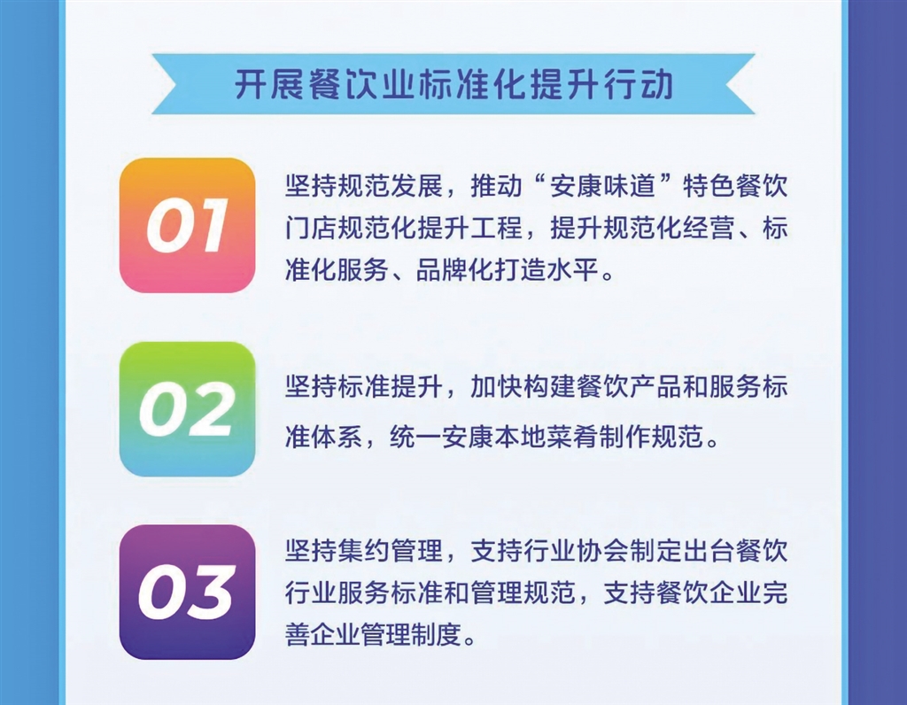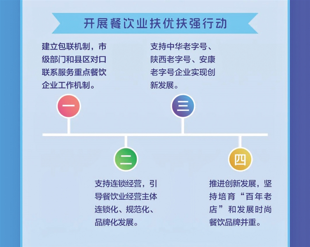 日前,安康市商務(wù)局等11部門聯(lián)合發(fā)布《關(guān)于進(jìn)一步推進(jìn)全市餐飲業(yè)高質(zhì)量發(fā)展的實施意見》,本期帶您一圖讀懂其重點任務(wù)。