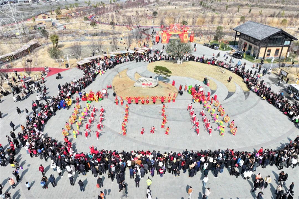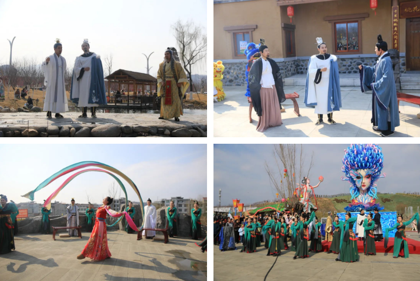 豐收大秧歌、龍騰腰鼓隊(duì)、喜慶蓮響、彩船、花轎大聯(lián)歡、社火、小場(chǎng)子戲等精彩的傳統(tǒng)民俗節(jié)目在桃花源相繼上演。新穎的編排、精彩的表演,令現(xiàn)場(chǎng)游客大飽眼福,叫好聲、喝彩聲此起彼伏。當(dāng)天近25000余名市民游客前往桃花源觀(guān)看表演、打卡游園,處處洋溢著“歡歡喜喜過(guò)大年”的節(jié)日氣氛。