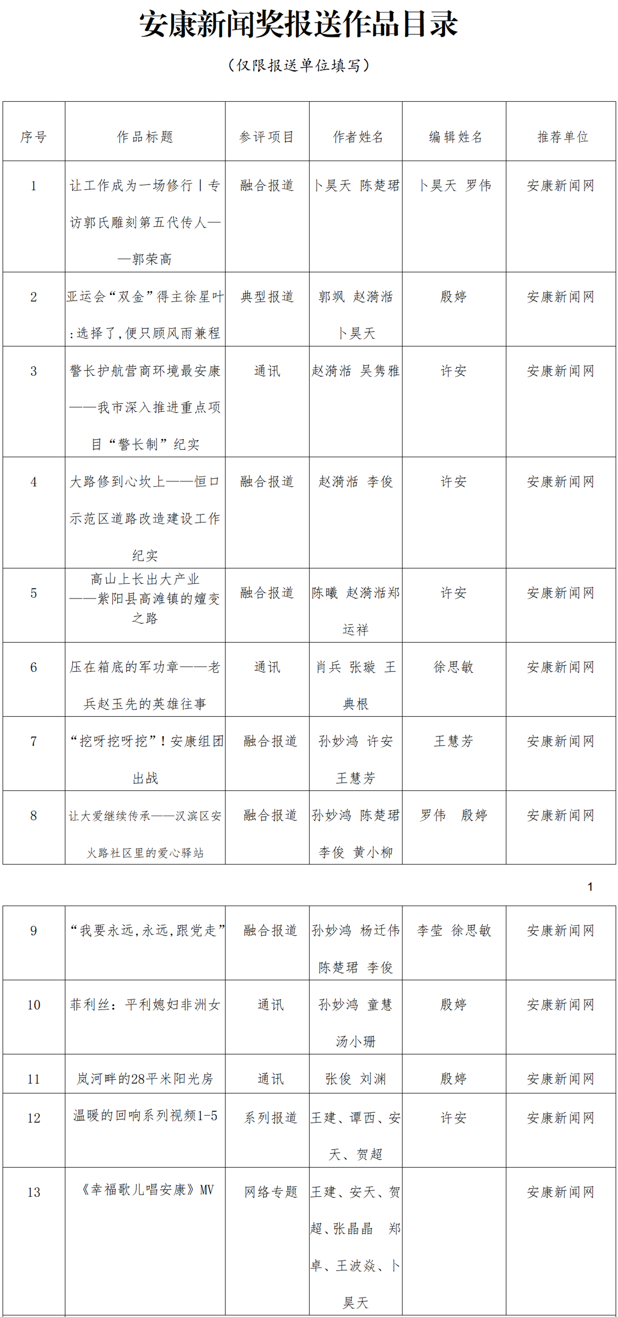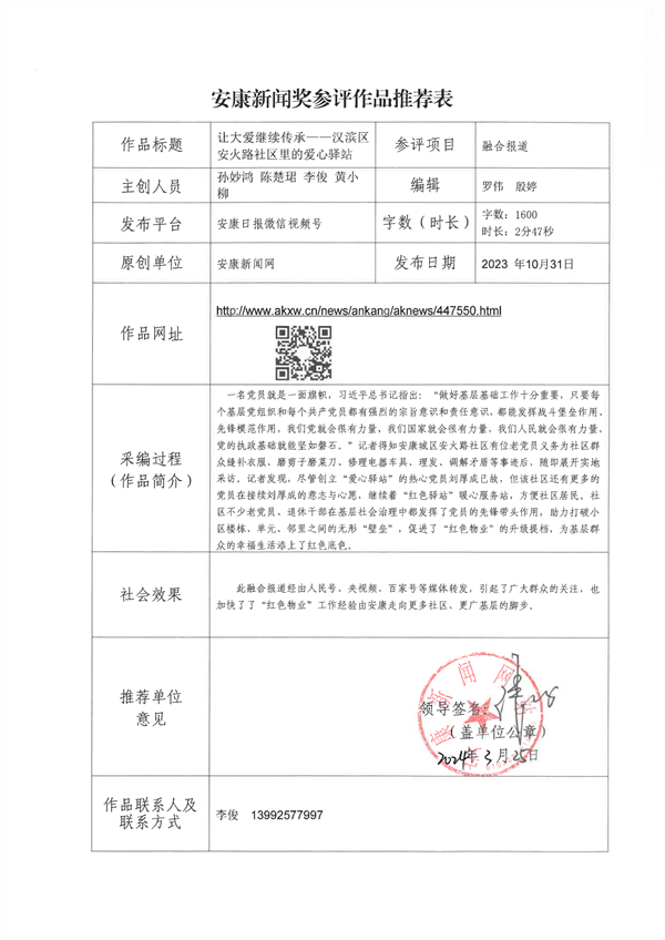 經(jīng)過編委會推薦、社黨委研究決定,擬推薦以下13件新聞作品參評2023年度“安康新聞獎”。公示時間從2024年3月25日至2024年3月29日,公示期為5個工作日。如有不同意見,請向安康日報社機關(guān)紀委、新聞管理部反映。