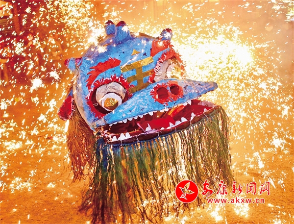 太平燈,又名“火獅子”,興起于明朝嘉靖年間,2015年12月被列入“陜西省第五批民俗類非物質(zhì)文化遺產(chǎn)名錄”。披紅掛彩舞翩躚,火樹銀花不夜天。這是一場(chǎng)“攻”與“守”的博弈,是一場(chǎng)屬于光與火的“盛宴”,也是視覺與心靈的雙重震撼。前期經(jīng)歷了“扎、糊、編、繪、合”五大工序制作而來的獅子活靈活現(xiàn),靜待佳時(shí)。正月十三到正月十六,當(dāng)天色漸晚,人群便如眾星捧月似的簇?fù)碇缓谝磺鄡芍华{子如約而至。在花燈引路,鑼鼓伴樂下,獅隊(duì)沿著固定的道路走街串巷。每到一戶人家,獅子以粗獷的步伐搖頭擺尾向主人“示威”或“挑釁”,主家和圍觀的群眾便拿出特制的“花子”對(duì)其噴射煙火。獅子在噴出的萬道金光中毫無懼色,反而在烈焰騰飛中雀躍歡舞,與火星融為一體,在古鎮(zhèn)街區(qū)的情境襯托下,塑造出崇尚和諧、敬畏自然的傳統(tǒng)底色和恣意縱橫、瀟灑自由的現(xiàn)代本色。花子燒得越猛烈,呼喊的聲浪越高,祈福的心愿也就越強(qiáng)烈,飽含著祈求生活安定、國(guó)泰民安的美好寓意,映照著涌動(dòng)銳意創(chuàng)新、開拓進(jìn)取的澎湃熱潮,而這些風(fēng)韻,也都如同藏在蜀河血脈中的基因密碼般,代代相傳,經(jīng)久不衰。