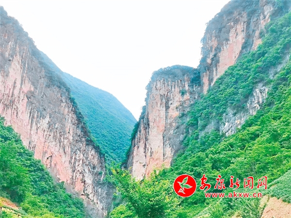白巖坡就是大巴山的杰作,地質(zhì)斷層形成的兩座山峰如同兩扇大門,擋在通往巴山的路途上,展示著什么是“一夫當(dāng)關(guān),萬夫莫開”。歲月的風(fēng)霜雪雨、日曬夜露將山體侵染成灰白相間的印跡,像極了牛角上的紋路,生命力極強的花草樹木在懸崖峭壁上瘋狂生長,一條不知趣的小溪硬是從兩山夾峙中拼命擠過,切出一道深澗,絮絮叨叨著“水可穿石”。從巖石里、溶洞中、草木根沁出的泉水,爭先恐后地竄進小溪,歡歌嬉戲。停車駐足,一股清新空氣不打招呼地沁入心脾,全身舒坦。抬頭仰望,一線天里寫滿花草樹木、藍天白云、風(fēng)花雪月,讓人心曠神怡,仿佛到了世外桃源。