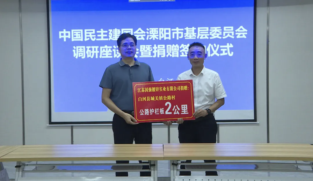 在座談會(huì)上,民建溧陽(yáng)基層委員會(huì)向白河慈善協(xié)會(huì)捐贈(zèng)5萬(wàn)元幫扶資金,會(huì)員企業(yè)江蘇國(guó)強(qiáng)鍍鋅實(shí)業(yè)有限公司為城關(guān)鎮(zhèn)公路村捐贈(zèng)了全長(zhǎng)2公里的公路護(hù)欄板,會(huì)員企業(yè)溧陽(yáng)暢享互聯(lián)網(wǎng)科技有限公司與白河縣電子商務(wù)公共服務(wù)中心簽訂了戰(zhàn)略合作協(xié)議。