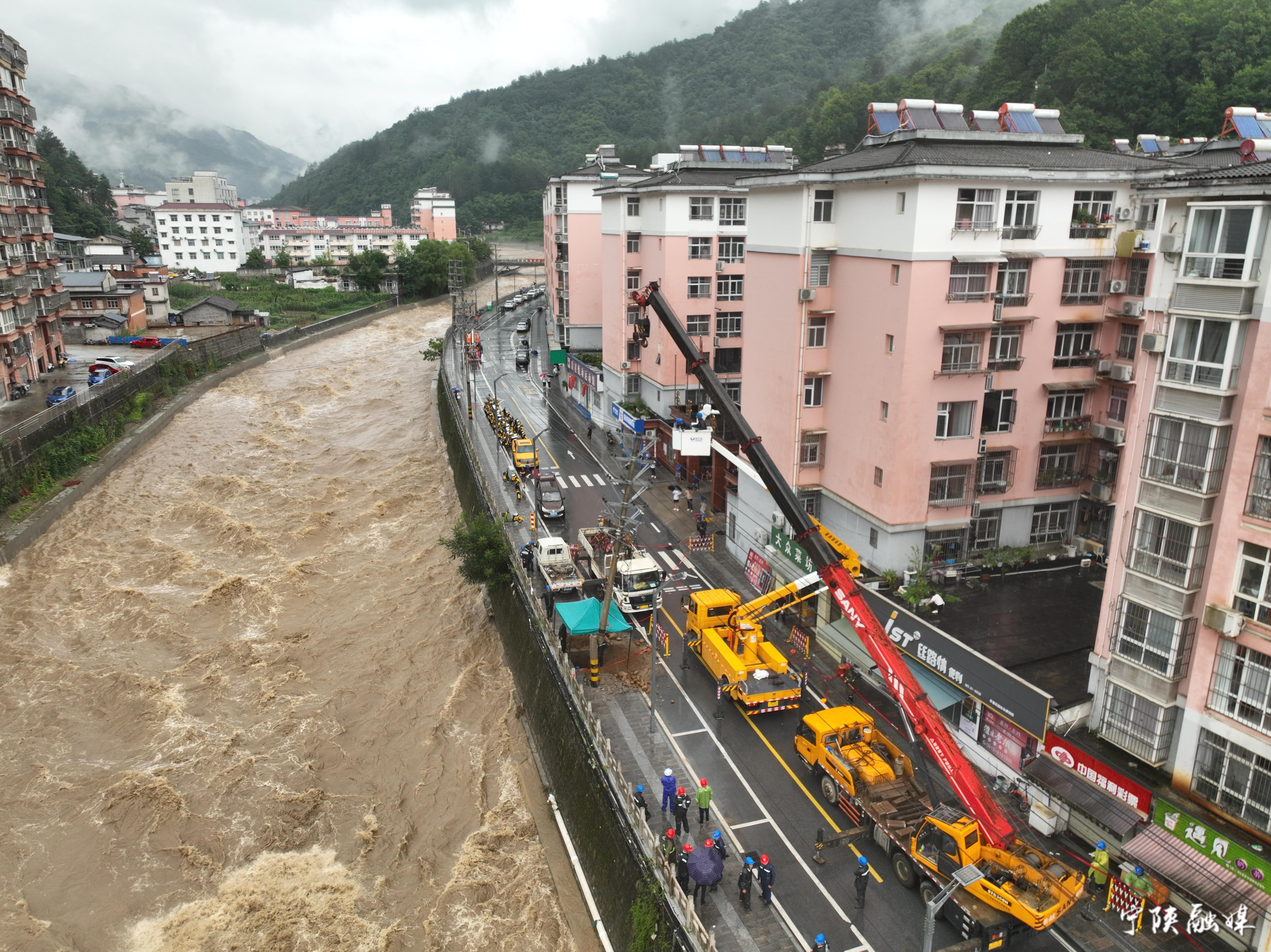 面對汛情,寧陜電力公司共出動巡視搶修車輛97臺次、檢修人員212人次、分6個現(xiàn)場工作組全力搶修,已實現(xiàn)各鎮(zhèn)供電恢復全覆蓋,合計恢復20790戶。