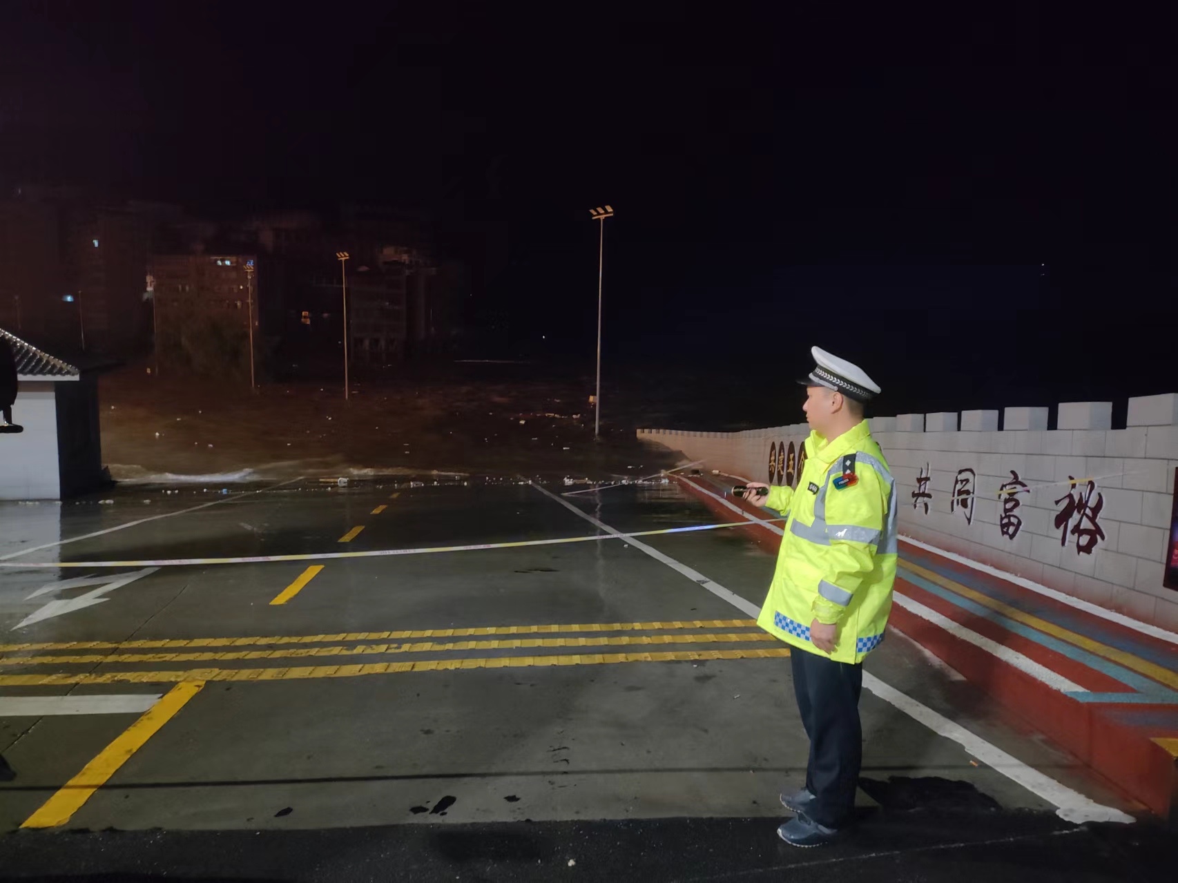 旬陽市公安交警持續(xù)堅守防汛一線,無畏風雨、無懼危險,開展交通管控、救援救助、應急處突、隱患排除等相關工作,全力保障人民群眾生命財產(chǎn)安全。暴雨中,交警身著熒光綠雨衣,不畏風雨,堅守在重要路段,對有滑坡、落石等危險路段及具有安全風險的臨水臨崖路段,采取臨時禁行的管制措施,引導過往車輛繞行,注意行車安全,協(xié)同相關部門現(xiàn)場進行清理,對不能現(xiàn)場處理的隱患及時上報,確保排險不留盲點、隱患不留死角。同時加強道路的巡邏管控,通過遠端分流,引導車輛、行人安全有序通行,確保群眾出行安全。以雨為令,以夜為伴,逆風而行,通宵達旦,風雨中,一抹抹“熒光綠”在熠熠閃光。