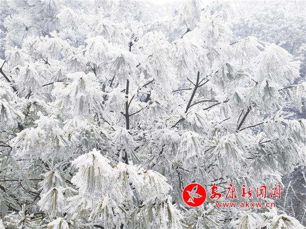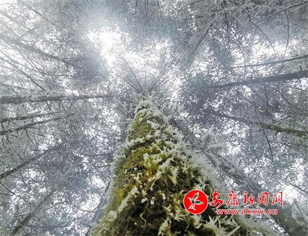 樹(shù)梢掛滿晶瑩的雪,仿佛盛開(kāi)的銀花