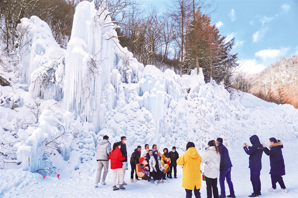 游客在冰瀑區(qū)合影留念