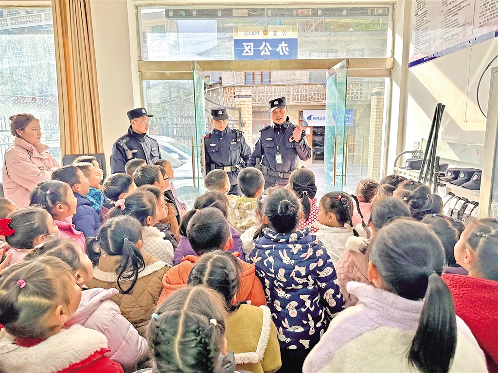 1月8日,紫陽縣公安局高橋派出所舉行“萌娃進(jìn)警營(yíng) 警心伴童心”主題110宣傳日警營(yíng)開放活動(dòng),邀請(qǐng)轄區(qū)學(xué)校師生走進(jìn)警營(yíng),感受警營(yíng)文化。陳益謙 攝