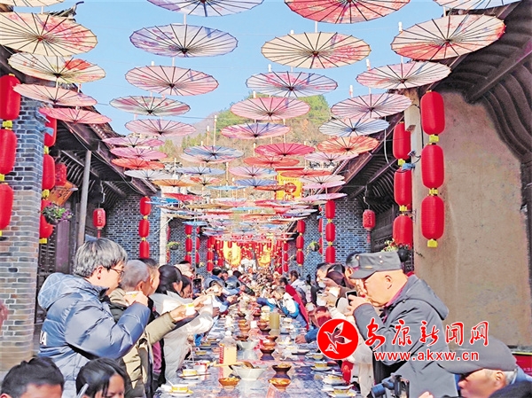 “觀眾朋友們大家好,這里是雙河口古鎮(zhèn),歡迎大家來到庖湯桌宴的活動(dòng)現(xiàn)場!”冬季庖湯長桌宴的舉辦地,是修葺一新的驛道文化廣場,游客在這里觀看精彩的文藝節(jié)目,品嘗本土特色美食,欣賞茶馬古道歷史浮雕,品味雙河口魅力故事。該項(xiàng)目是2024年7月19日洪災(zāi)后,為修復(fù)損壞的護(hù)坡,依托現(xiàn)有地形條件,盤活原有閑置資源重新改造的文化廣場項(xiàng)目,于當(dāng)年10月1日建成投用。項(xiàng)目建成后,古鎮(zhèn)的景區(qū)框架拉得更寬,文化活動(dòng)載體變得更大,文化內(nèi)容展示更加生動(dòng),配合12月31日建成投用的省級鄉(xiāng)村振興示范鎮(zhèn)展陳室項(xiàng)目,雙河口的歷史文化和人文故事變得可感可知,成為古鎮(zhèn)一處新的地標(biāo)性“打卡地”。