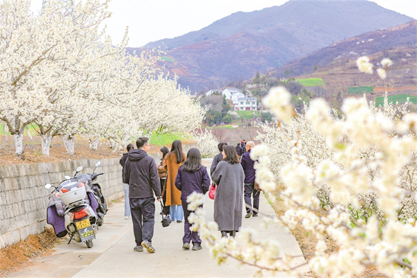 三月上旬,“櫻花之約·和美鄉(xiāng)村”示范展演在段家河薛家灣上演,櫻桃花海中,歌舞、漢服走秀、搖滾樂、表演唱、樂器演奏、小品等群眾喜聞樂見的節(jié)目,將鄉(xiāng)土藝術(shù)與特色民俗文化深度融合,舞鄉(xiāng)情、唱鄉(xiāng)音、觀演出、賞春景,以村莊房舍和漫山櫻桃花為背景,為游客送上了一道道精彩紛呈的暢游“花”樣春日“文化大餐”。