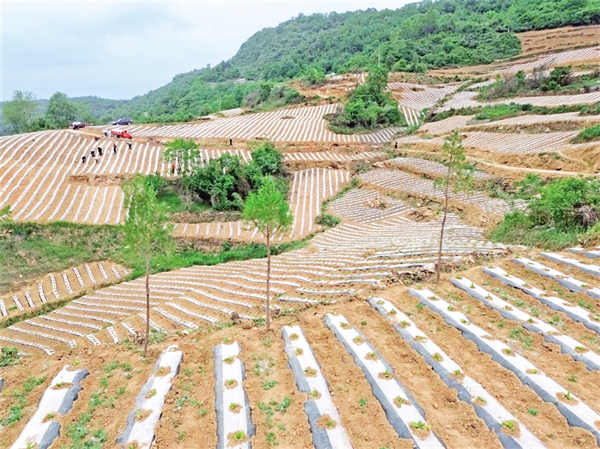 離開錢河梁,走進海棠寺村的梯田里,種煙大戶吳義剛正迎著晨曦帶上20余名村民搶墑移栽。23年的種煙歲月在他臉上刻下溝壑,也沉淀出“致富良經”。他瞇著眼睛笑著說:“去年新種的80畝煙田毛收入24萬,今年爭取再多賺點,給孩子換臺好車。”當目光撫過嫩綠的煙苗,手掌摩擦著滴灌管道,吳義剛驀然間變得激動:“雖然今春干旱嚴重,但是政府配發(fā)的抗旱設備讓移栽成活率大大提升,我們的心血總算沒有白費?!贝逯Р繒泟⒌瞧巾斨胰账闫甬a業(yè)增收賬:“今年450畝煙田已基本栽完,11個大戶帶著小戶干,戶均增收能破萬元?!?/p>