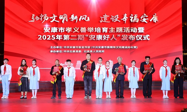 本次活動以“弘揚文明新風 建設幸福安康”為主題,由市委宣傳部主辦、石泉縣委和縣政府承辦,旨在深入學習貫徹黨的二十屆四中全會精神,扎實推進崇德向上幸福安康建設?;顒蝇F(xiàn)場,通過播放典型人物短片、現(xiàn)場互動訪談等形式,生動再現(xiàn)了陳登發(fā)、高虎、黃壽琴等好人代表的感人事跡。市級領導及“中國好人”“陜西好人”等先進典型代表為28名新入選的“安康好人”頒發(fā)紀念證書?;顒蝇F(xiàn)場同時發(fā)布了2025年安康市“新時代好少年”名單,24名青少年獲得殊榮。