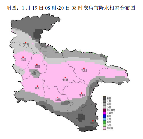 根據(jù)最新氣象觀測資料和數(shù)值模式分析,經(jīng)省市會商研判,預(yù)計(jì)今天夜間至21日我市有雨雪寒潮天氣,強(qiáng)雨雪時(shí)段為19日白天,巴山沿線部分地方有凍雨,川道河谷地區(qū)以小雨或雨夾雪為主,中高山地區(qū)雨夾雪轉(zhuǎn)小到中雪,秦巴山區(qū)及東部高山局地大到暴雪,20及21日白天全市大部仍有間歇性弱雨雪天氣。過程累計(jì)降水量:全市大部5~8毫米,東部局地超過12毫米,高山地區(qū)新增積雪深度可達(dá)3~12厘米。今天夜間至22日氣溫持續(xù)走低,過程全市大部平均氣溫下降8~10℃。22日雨雪天氣結(jié)束,受前期雨雪天氣和冷空氣持續(xù)影響,氣溫仍較低,預(yù)計(jì)最低氣溫將出現(xiàn)在22日或23日清晨,川道地區(qū)-5~-2℃,中高山地區(qū)-10~-6℃,局地低于-12℃。過程期間全市大部平均風(fēng)力3~4級,山區(qū)局地有6級或以上陣風(fēng)。