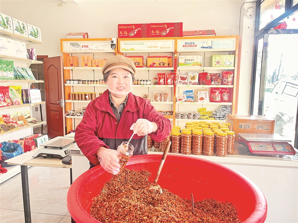 生意有了起色,丈夫的身體也逐漸康復,生活終于重新亮堂起來。作為鎮(zhèn)人大代表,劉小洪深知,一人富不算富,大家富才是真的富。她主動分享直播帶貨經(jīng)驗,帶動周邊村民參與特產(chǎn)加工和網(wǎng)絡銷售。她優(yōu)先聘請村里的留守婦女和困難家庭來幫忙,手把手教她們技術(shù)。為了保證產(chǎn)品的純正鄉(xiāng)味,她堅持從本村及周邊村采購黃豆、辣椒、野油菜、干豇豆等原材料,平均每年收購約1萬公斤黃豆、2000余公斤辣椒、2000余公斤野油菜及干豇豆,讓鄉(xiāng)親們的農(nóng)產(chǎn)品有了穩(wěn)定銷路,也變成了實實在在的收入。