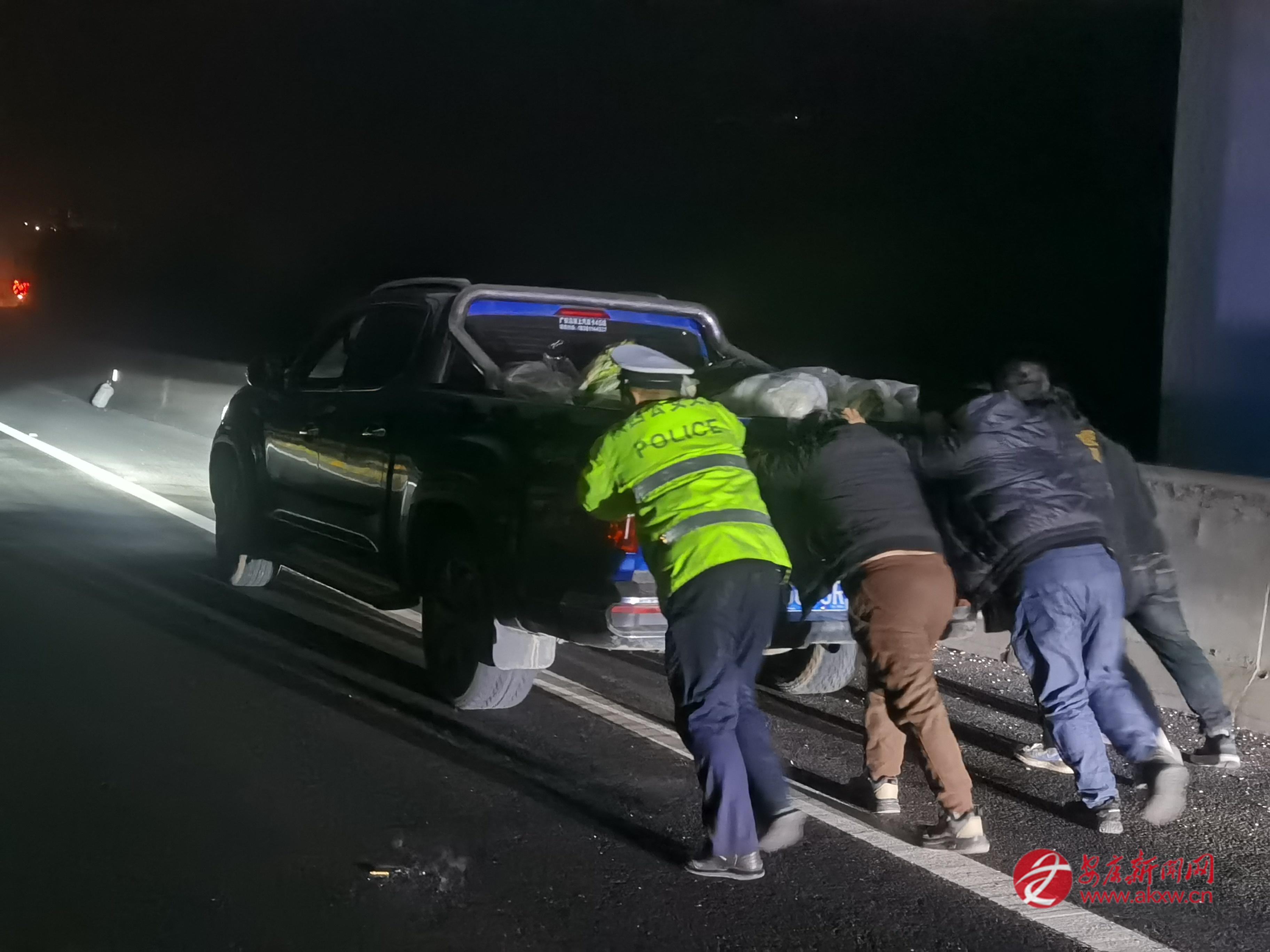 春運(yùn)路上的安全守護(hù):安十執(zhí)勤大隊(duì)深夜徒手推車(chē)排險(xiǎn)保暢通
