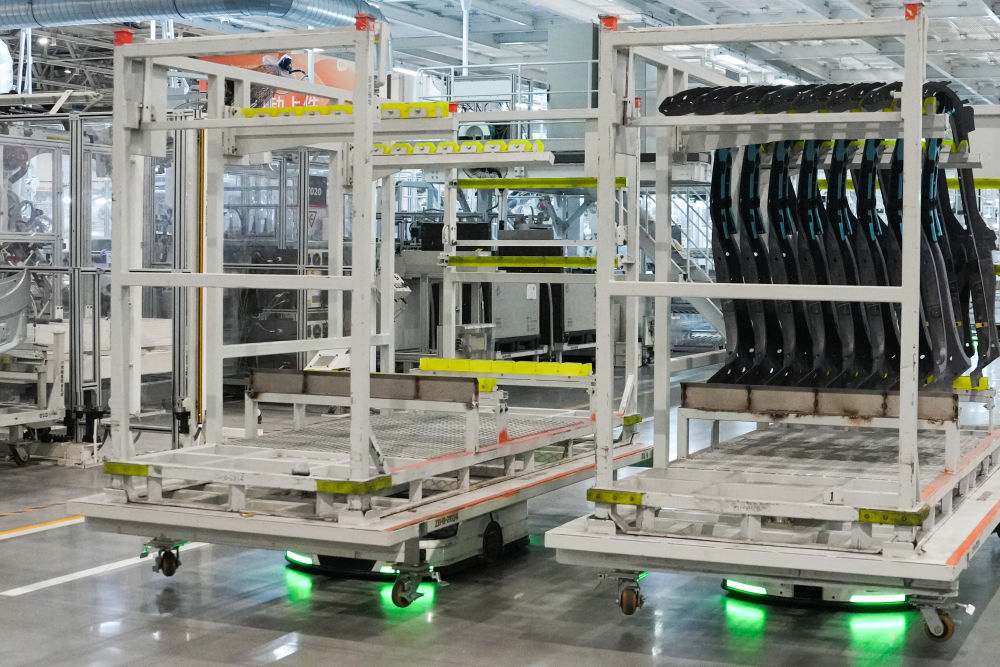 從研發(fā)制造到測試應(yīng)用,北京發(fā)揮汽車產(chǎn)業(yè)長期積累,積極擁抱新品牌、新技術(shù),新模式,新能源汽車產(chǎn)業(yè)蓬勃發(fā)展,產(chǎn)業(yè)鏈供應(yīng)鏈不斷鞏固完善。這是自主移動機器人在北京小米汽車工廠搬運物資(2025年6月16日攝)。