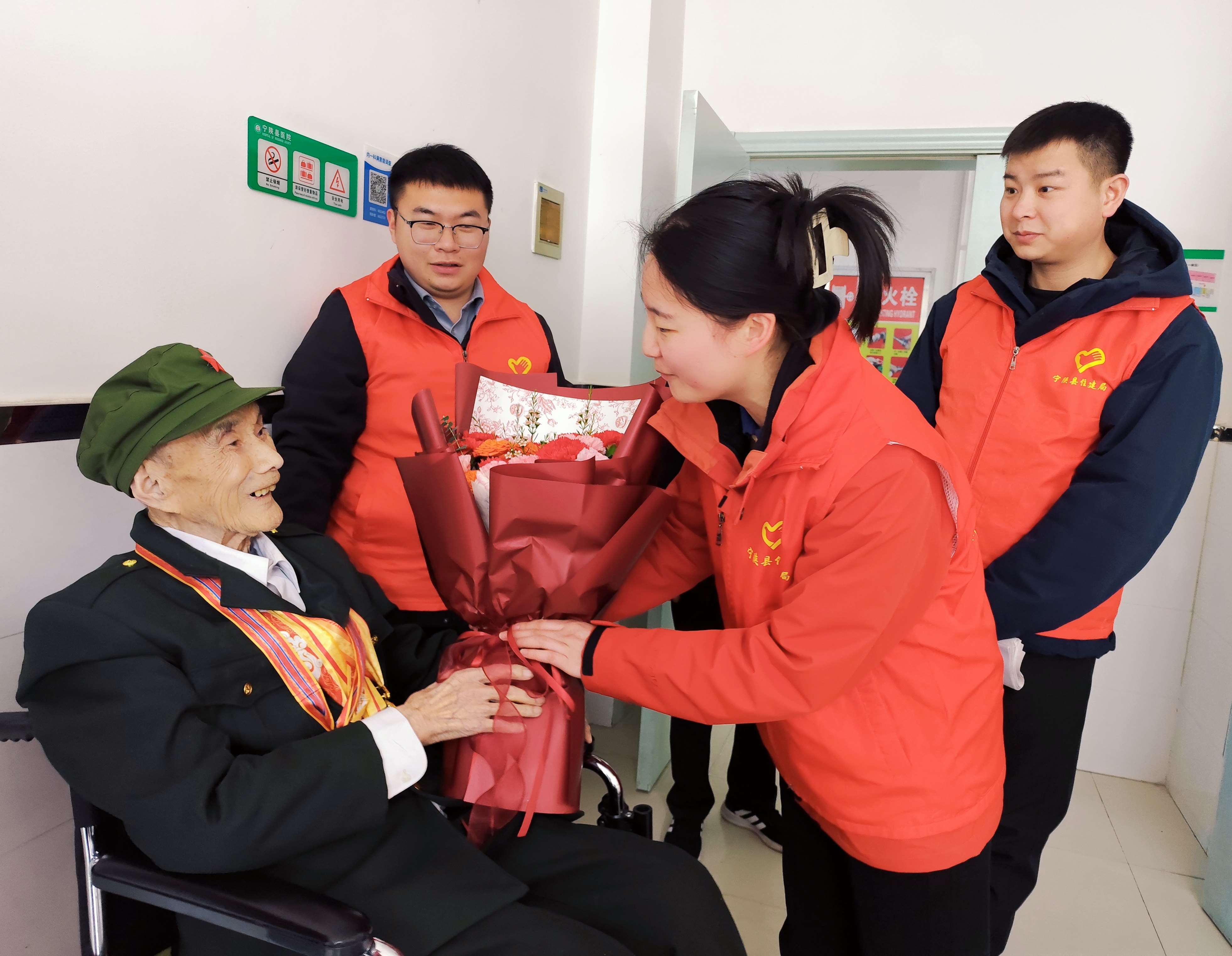活動現(xiàn)場暖意融融,志愿者圍在老人身邊,促膝長談、噓寒問暖,細(xì)心詢問其飲食起居和身體狀況,認(rèn)真傾聽那段浴血奮戰(zhàn)的革命故事。“老人飲食清淡,精神狀態(tài)一直很好?!弊o(hù)理人員李娟介紹,老人性格開朗,時常給大家講述戰(zhàn)場事跡,傳遞著滿滿的正能量。