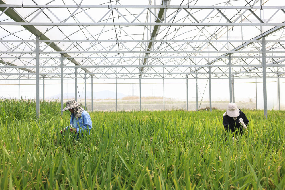 2025年3月21日,工作人員在海南三亞國(guó)家南繁科研育種基地收種。新華社記者 張麗蕓 攝