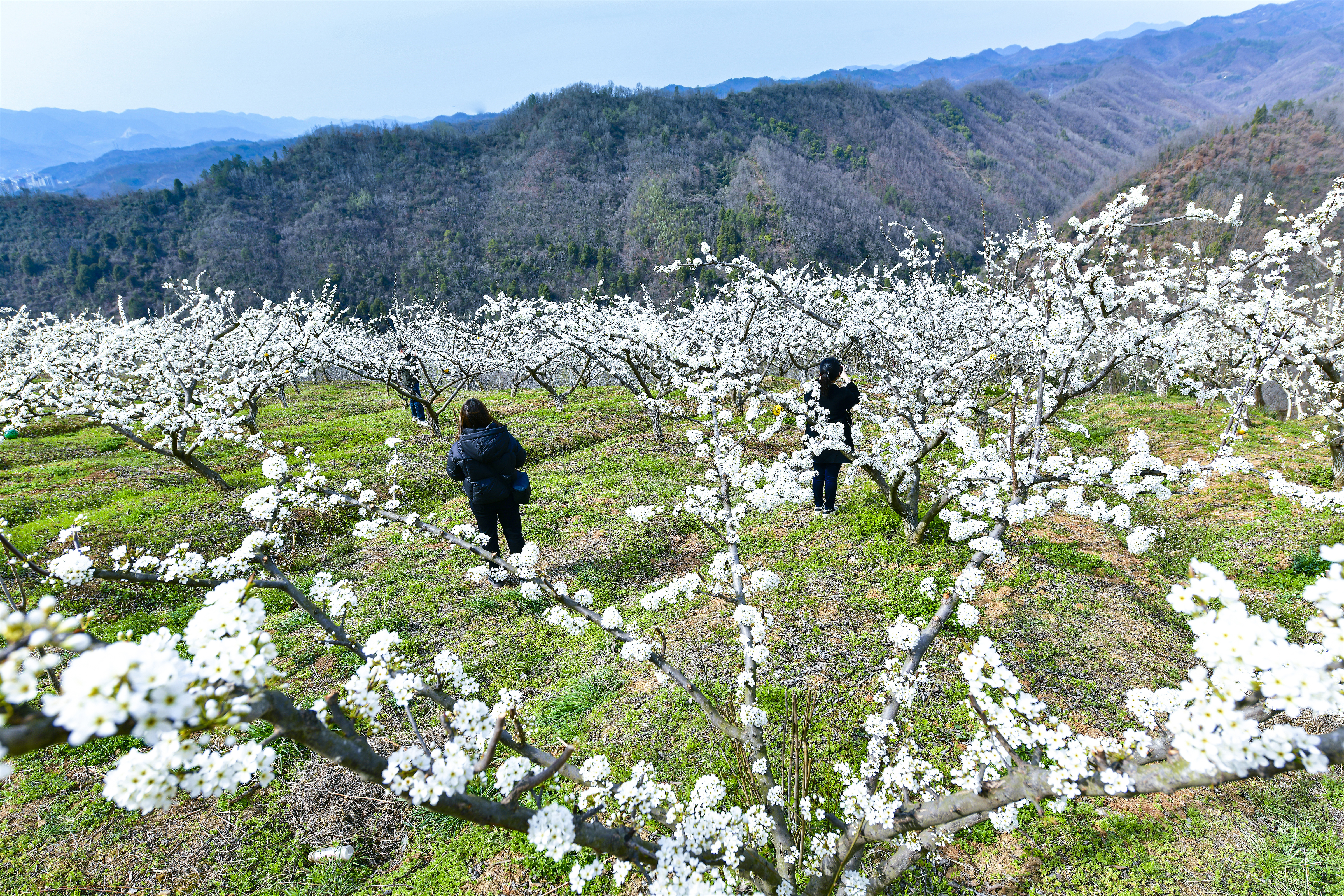 美景引得游人醉。不少游客慕名而來,徜徉在雪白花海間,或駐足細(xì)賞繁花盛景,或拍照打卡,用鏡頭定格春日限定的美好瞬間?!霸缇吐犝f這里的李子花開得正盛,特意帶著家人過來踏青賞花。滿眼潔白,聞著花香,整個(gè)人都覺得輕松愜意?!闭诨ㄩg留影的游客李女士欣喜之情溢于言表。