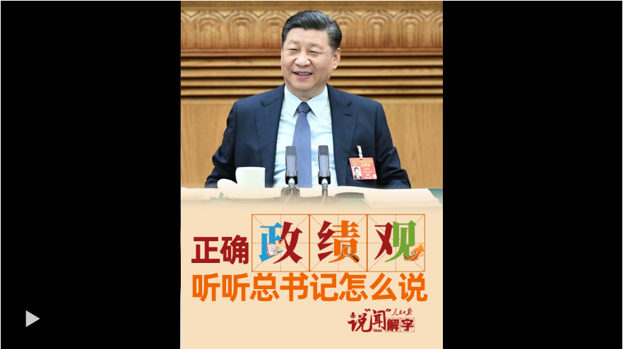 寫(xiě)“政”先寫(xiě)“正”、“績(jī)”里有個(gè)“責(zé)”,政績(jī)觀問(wèn)題是一個(gè)根本性問(wèn)題。如何用“正確的政績(jī)觀指導(dǎo)我們正確地改造主觀世界”,聽(tīng)聽(tīng)習(xí)近平總書(shū)記怎么說(shuō)。