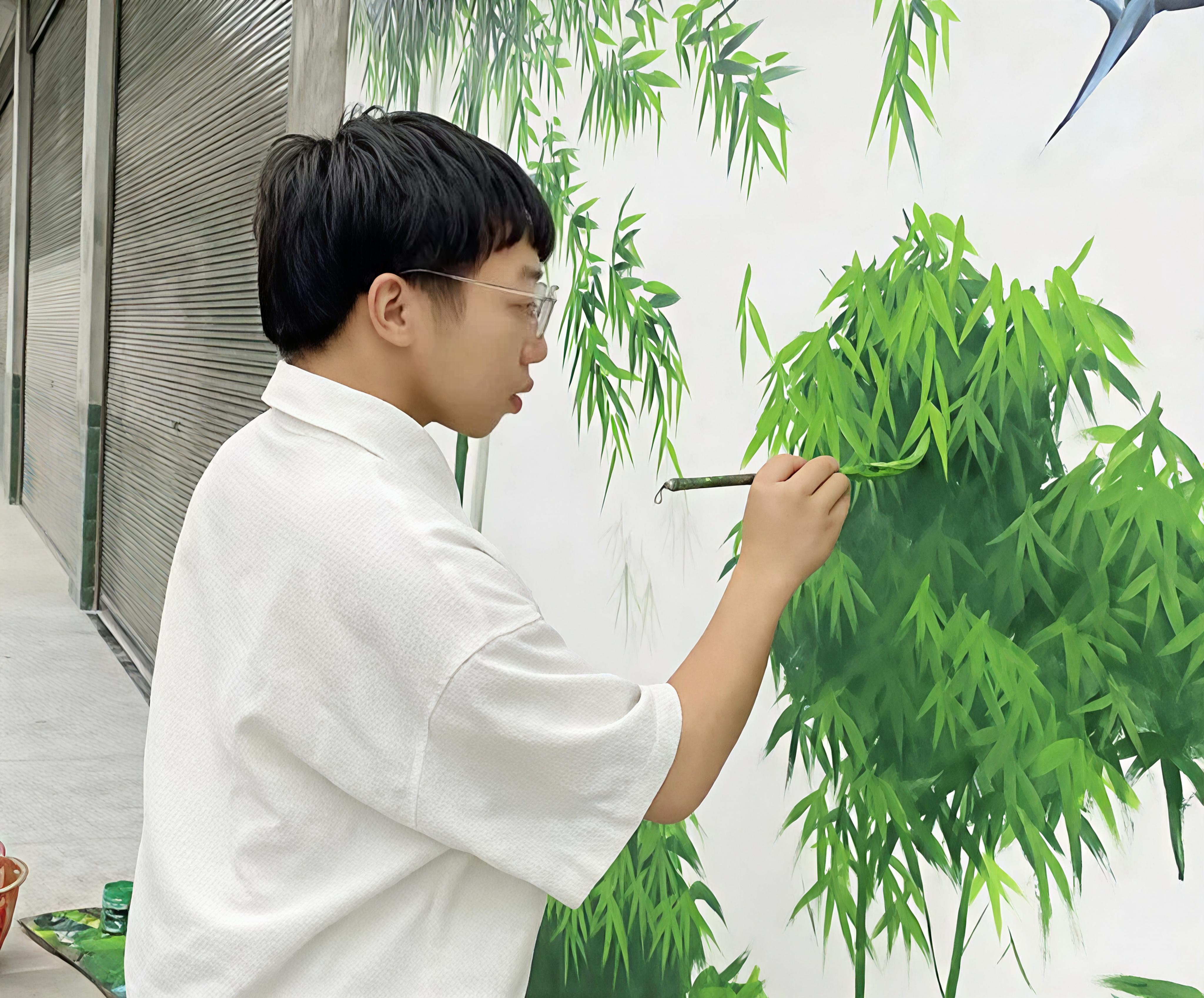 張家壩村,1998年出生的游乙山正蹲在墻角專注創(chuàng)作,不多時(shí),一面栩栩如生的文化墻便呈現(xiàn)眼前,與青山綠水、整潔街道相映成趣,勾勒出鄉(xiāng)村振興的美好畫卷。這位土生土長的正陽青年,畢業(yè)于湖南文理學(xué)院,憑借扎實(shí)繪畫功底,在鄰縣創(chuàng)辦“藝山美學(xué)館”,從事美術(shù)培訓(xùn)和墻體彩繪。