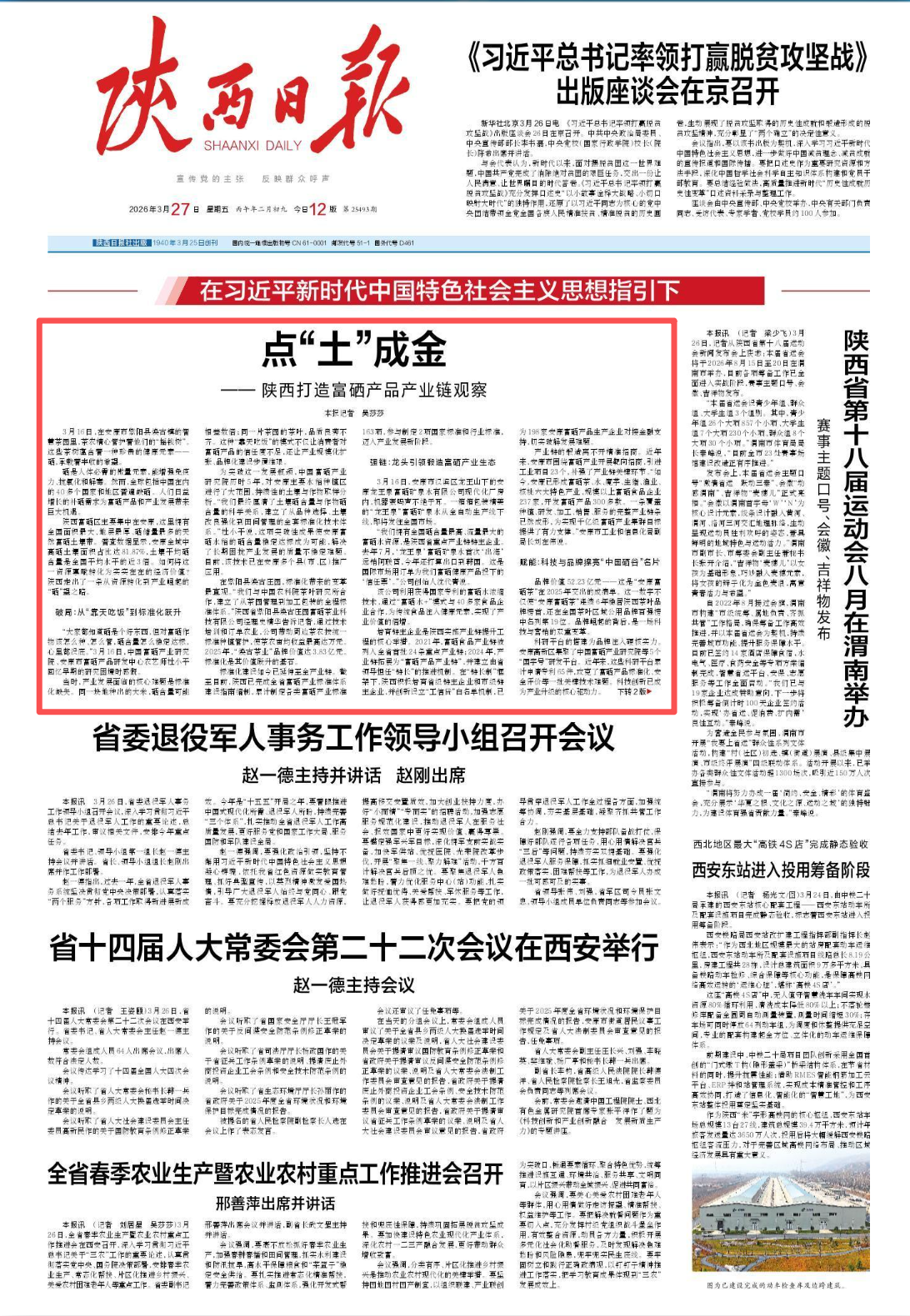 《陜西日報(bào)》丨點(diǎn)“土”成金——陜西打造富硒產(chǎn)品產(chǎn)業(yè)鏈觀察