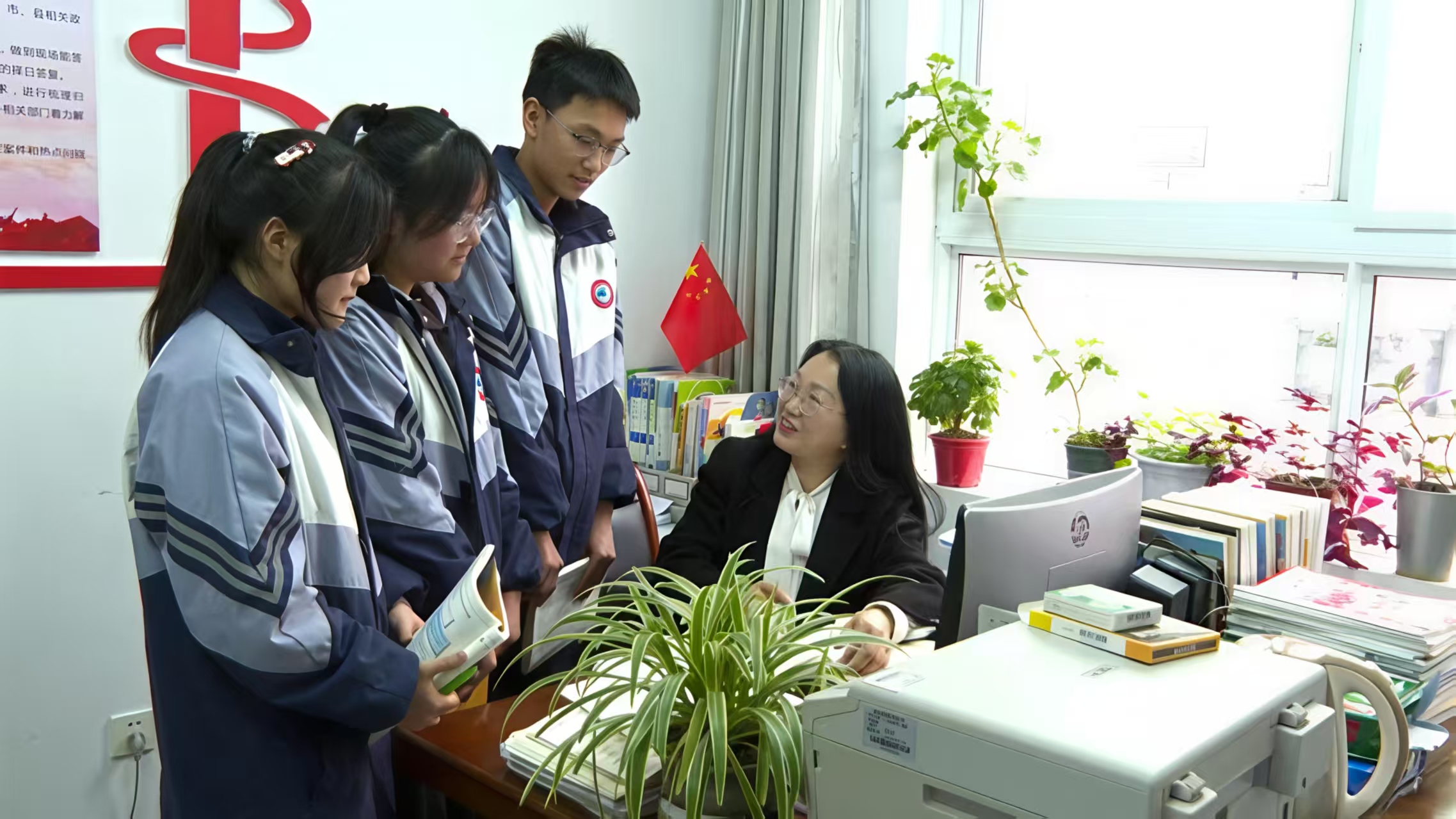 程文嬌在辦公室為學(xué)生解答問題 張榮榮 攝