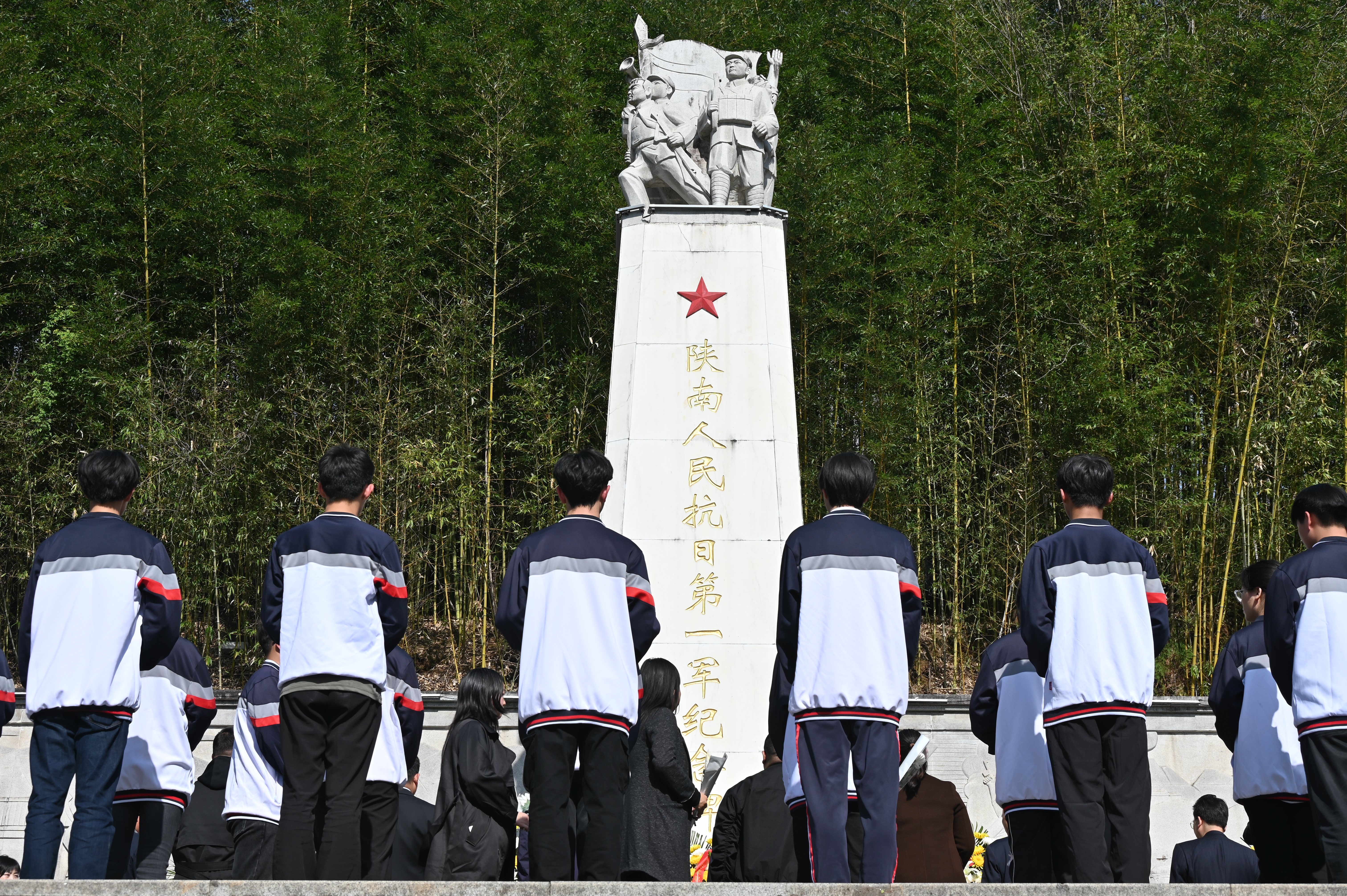 3月31日,安康職業(yè)技術(shù)學(xué)院組織師生赴漢陰縣開展“漢陰尋跡、致敬英烈”活動,參觀了漢陰縣沈啟賢將軍故居、楊棄將軍紀(jì)念館。圖為陜南人民抗日第一軍紀(jì)念廣場,師生代表敬獻(xiàn)花籃。 張智明 攝