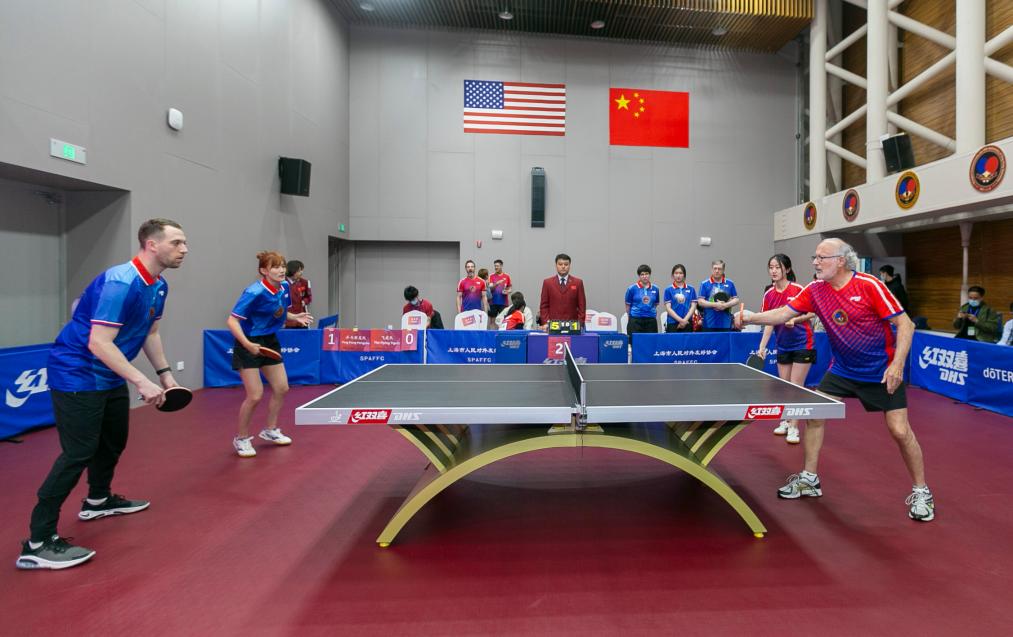 2021年4月10日,上海舉行紀(jì)念中美“乒乓外交”50周年系列活動(dòng)。這是中美選手參加乒乓球友誼賽。新華社記者 王翔 攝