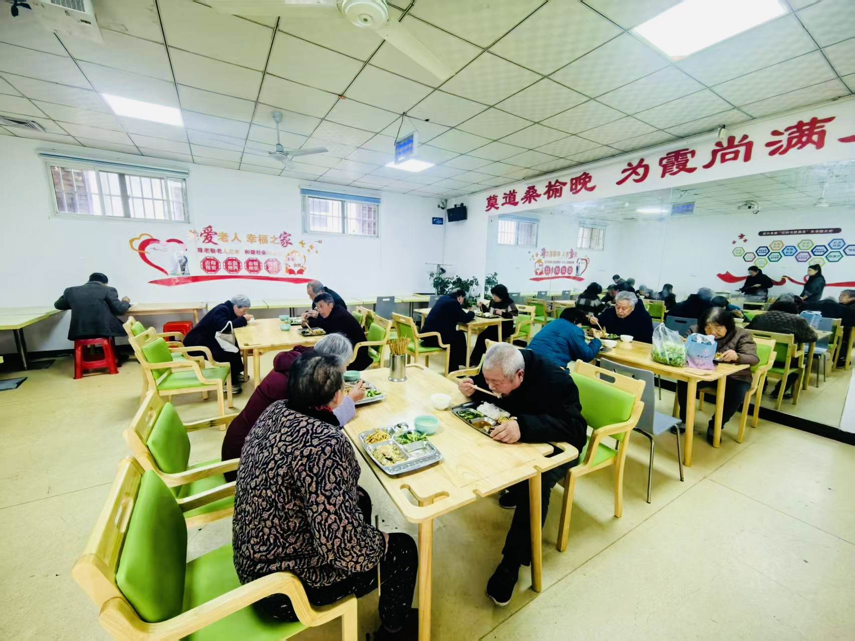 為了讓老人吃得舒心、過得安心,社區(qū)依托老年人日間照料中心,專門騰出約300平方米的空間打造孝義食堂,合理規(guī)劃廚房、餐廳,配套建成老年文化室、休閑娛樂室、健康保健室、針灸理療按摩室,搭建了應急救助服務平臺,形成“就餐+康養(yǎng)+休閑+應急”的一站式服務體系,給老人提供餐前餐后全方位的貼心照顧。