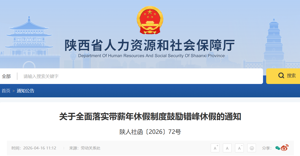 陜西發(fā)布最新通知:全面落實帶薪年休假制度+鼓勵錯峰休假