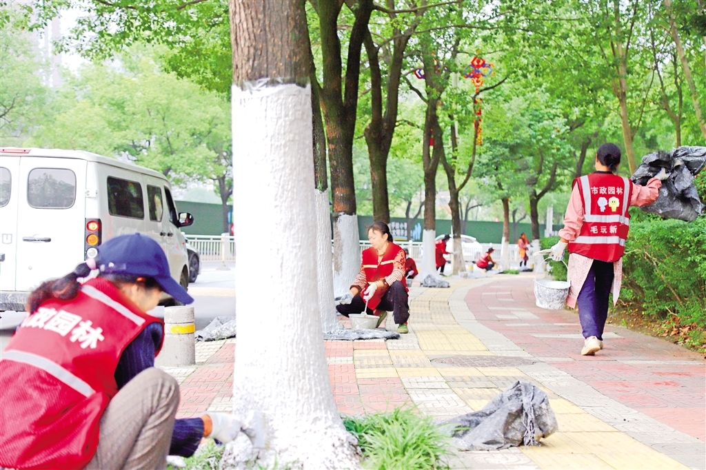 本網(wǎng)訊(通訊員 錢(qián)運(yùn)立 李敏)11月5日,安康城區(qū)濱江大道、東內(nèi)環(huán)路、黃溝路、東壩泵站等路段一派忙碌景象,綠化工人們或站或蹲,手持刷子、滾輪在樹(shù)干上往復(fù)涂刷……