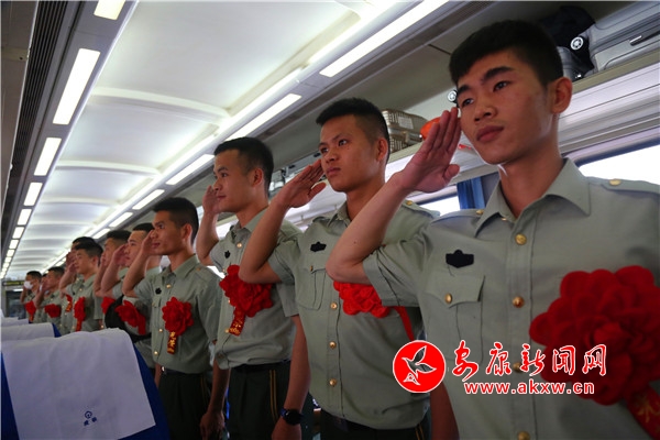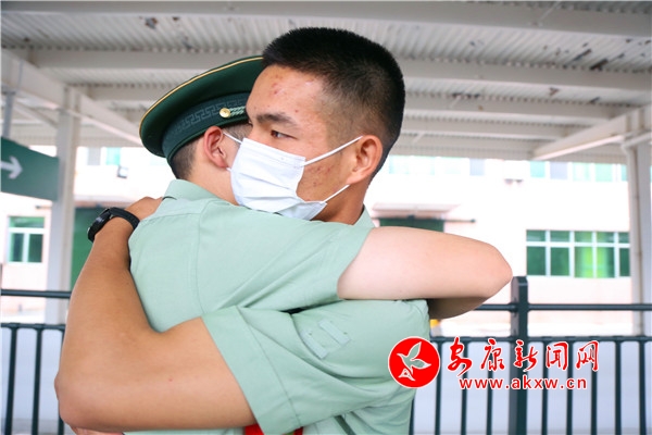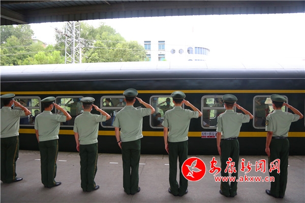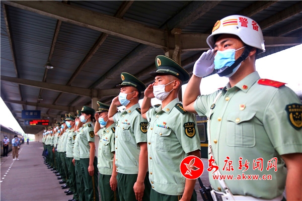 一雙雙緊握的手、一個(gè)個(gè)深情的擁抱、一對(duì)對(duì)浸透淚水的眼睛和最后一次的敬禮,無(wú)一不訴說(shuō)著戰(zhàn)友之間無(wú)限的眷戀。伴隨著汽笛聲響起,火車(chē)緩緩前進(jìn),退伍老兵們帶著支隊(duì)領(lǐng)導(dǎo)的囑托和戰(zhàn)友的祝福,揮淚告別,送行官兵列隊(duì)敬禮,向老兵們表達(dá)最后的敬意。