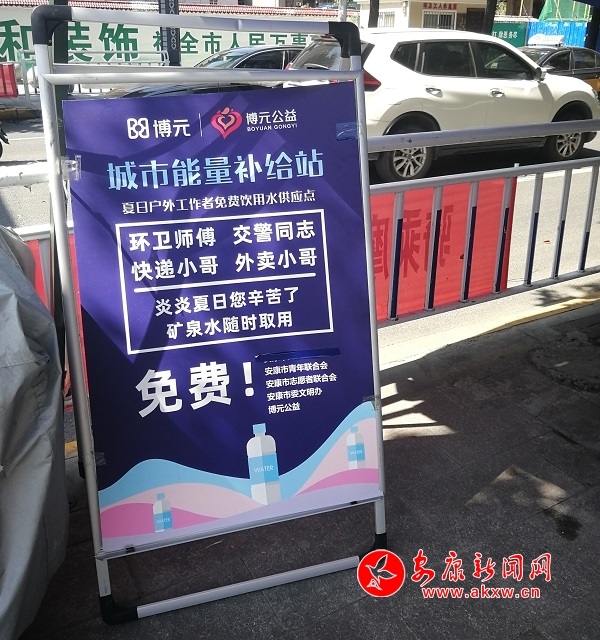 據(jù)了解,此次活動從7月22日陸續(xù)展開,至8月31日結(jié)束,愛心冰柜投放8個地點,分別是博元幸福城售樓部、高新管委會門口、高新幼兒園門口、江北安康濱江大道(扶貧開發(fā)局對面)、影劇院、大橋路(信合廣場對面)、安康中學(衛(wèi)校十字)、大千印象城,礦泉水每天每個點投放8箱左右。