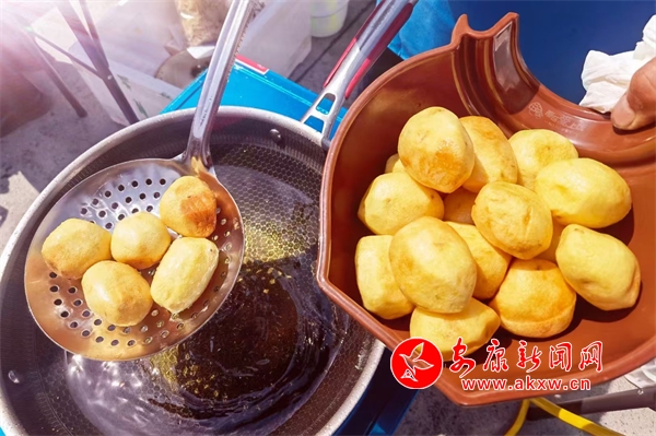 在活動(dòng)現(xiàn)場(chǎng),還設(shè)置了特色農(nóng)產(chǎn)品展銷區(qū)、美食小吃展銷區(qū)以及百貨小商品攤位。攤位前吆喝聲、叫賣聲此起彼伏,茶葉、臘肉、核桃、洋芋粑粑、苞谷糖等琳瑯滿目的特色農(nóng)產(chǎn)品擺放整齊,小龍蝦、烤串等食物香氣四溢,吸引游客駐足品嘗、購(gòu)買。