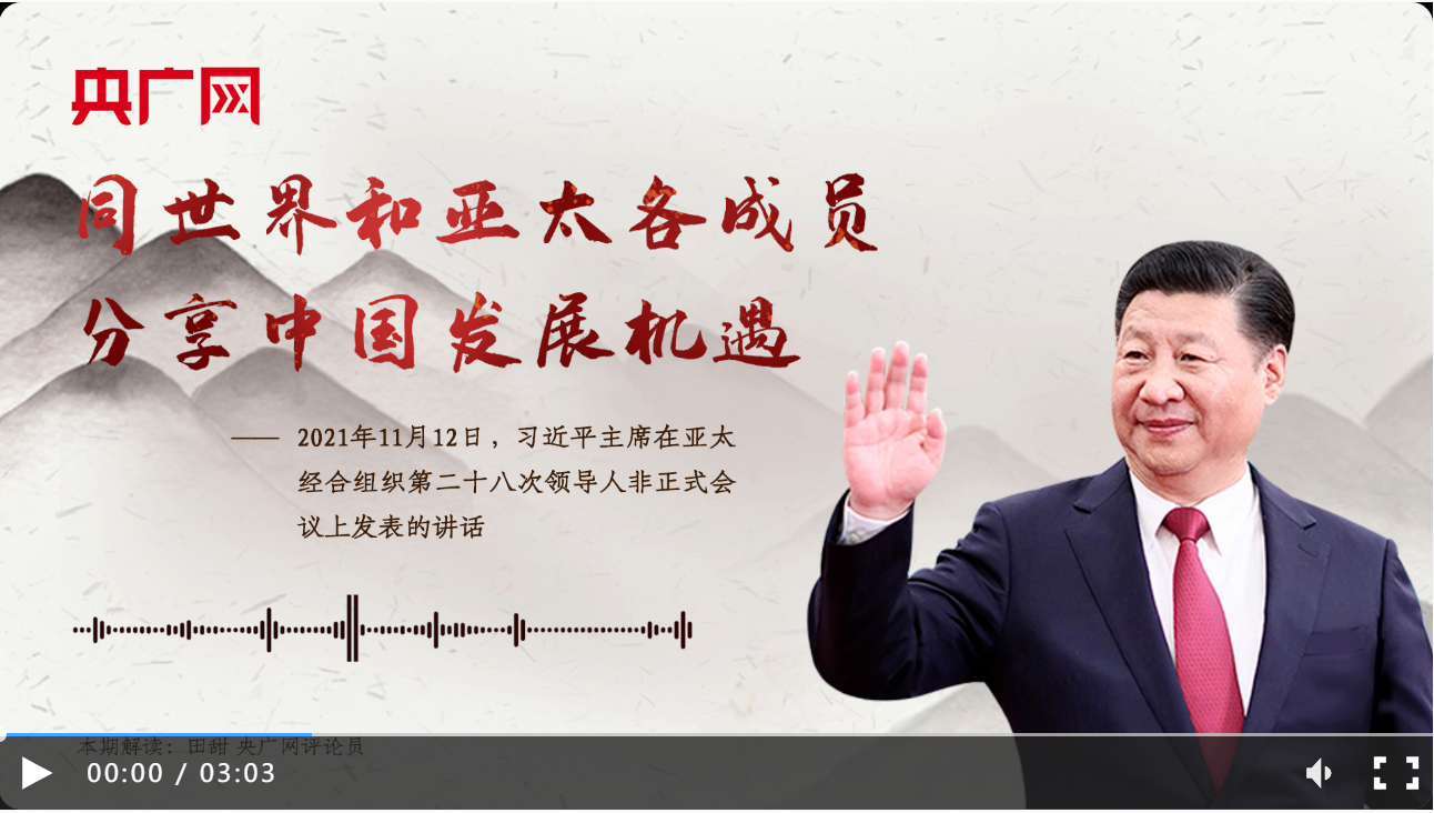 這段話出自2021年11月12日習(xí)近平主席在亞太經(jīng)合組織第二十八次領(lǐng)導(dǎo)人非正式會(huì)議上發(fā)表的講話。