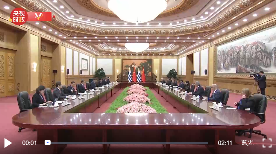 11月22日下午,國家主席習(xí)近平在人民大會堂同來華進行國事訪問的烏拉圭總統(tǒng)拉卡列舉行會談。