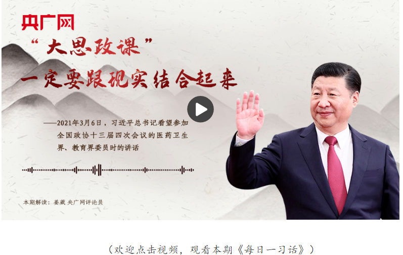 這句話出自2021年3月6日習(xí)近平總書記看望參加全國政協(xié)十三屆四次會議的醫(yī)藥衛(wèi)生界、教育界委員時的講話。