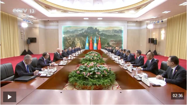 會(huì)見(jiàn)期間,兩國(guó)元首見(jiàn)證宣布兩國(guó)發(fā)展戰(zhàn)略對(duì)接、能源、科技、住建、教育、體育、野生動(dòng)物保護(hù)等20余份雙邊合作文件以及為在哈新設(shè)立兩處魯班工坊揭牌。