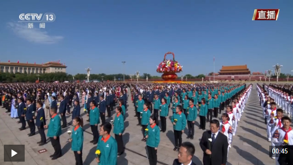獨家視頻丨向人民英雄敬獻花籃儀式正式開始 全場高唱國歌