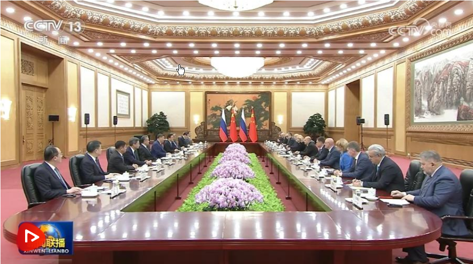 習(xí)近平指出,今年以來,中俄關(guān)系錨定更高水平、更高質(zhì)量發(fā)展目標(biāo),在風(fēng)高浪急的外部環(huán)境中篤定前行。維護好、鞏固好、發(fā)展好中俄關(guān)系,是雙方的戰(zhàn)略抉擇。我同普京總統(tǒng)在莫斯科和北京兩次會晤,就中俄關(guān)系中的戰(zhàn)略性、全局性問題深入交流,作出新的謀劃和部署。雙方要保持密切協(xié)調(diào),落實好我同普京總統(tǒng)達成的重要共識,著眼兩國和兩國人民的根本利益,把中俄合作的蛋糕做好,也為世界和平與發(fā)展作出新的更大貢獻。