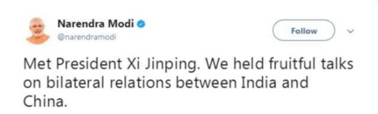 “見了習(xí)近平主席。我們就印中雙邊關(guān)系舉行了富有成果的會談!
