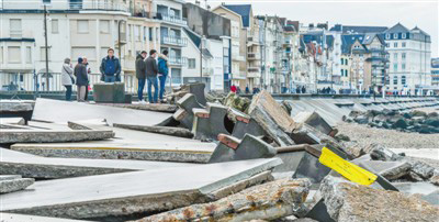 | 1月6日,法國北部維姆勒鎮(zhèn)的防波堤被“埃莉諾”風(fēng)暴摧毀。新華社發(fā) |