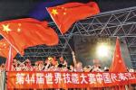 圖為日前在阿拉伯聯(lián)合酋長國舉行的第44屆世界技能大賽開幕式上,人們揮舞著中國國旗歡迎中國代表團(tuán)入場。