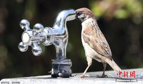 當(dāng)?shù)貢r間2015年5月26日,韓國氣象局發(fā)布了本年度首個熱浪警報,稱在未來幾日,氣溫或升至33攝氏度。首爾街頭一只小鳥試圖把頭探進水龍頭里喝水。中新網(wǎng)6月25日電……