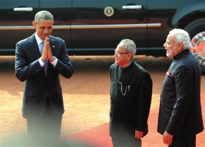 泰姬陵不僅清潔一新,印度政府還派重兵守衛(wèi)。白宮卻宣布奧巴馬不參觀泰姬陵了。25日,印度首都新德里,奧巴馬任期內(nèi)第二次訪問(wèn)印度,印度總理莫迪(右)前往迎接……